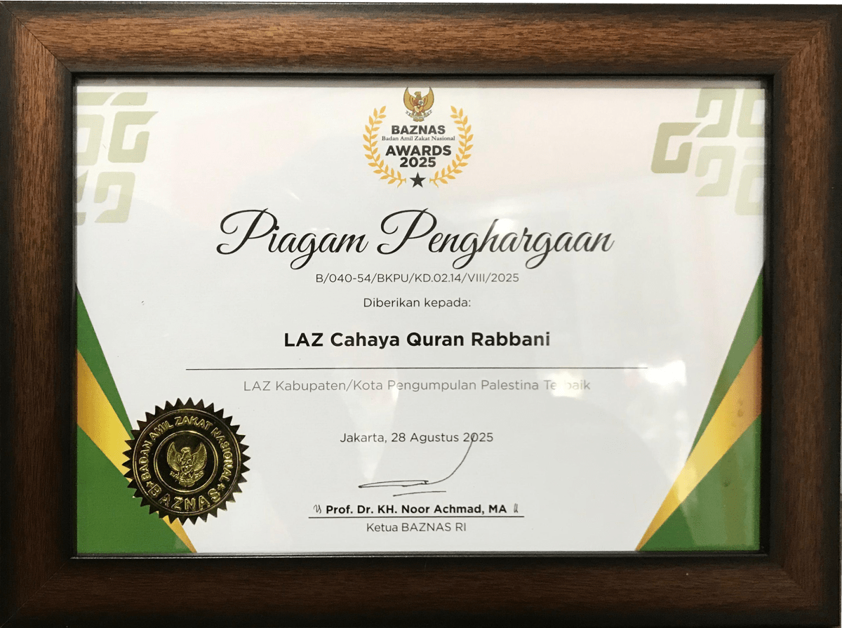 Piagam Penghargaan Dalam Kategori LAZ Kabupaten/Kota Pengumpulan Palestina Terbaik BAZNAS Award 2025